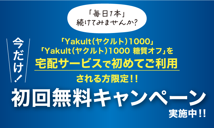 - 本キャンペーンの対象は、「Yakult(ヤクルト)1000」・「Yakult(ヤクルト)1000 糖質オフ」の宅配サービスを初めてご利用される方で、4週間以上継続してお飲みいただける方に限ります。